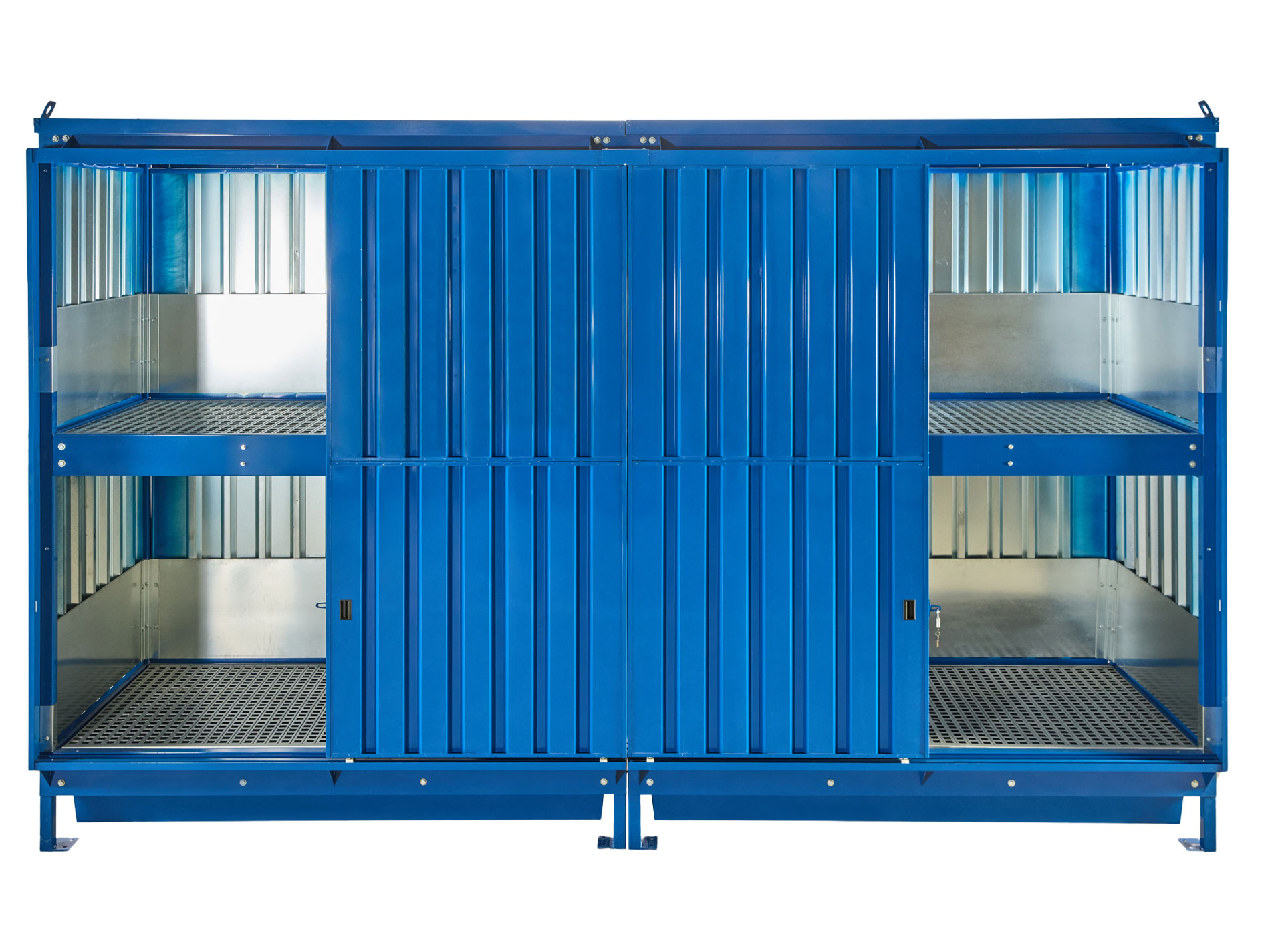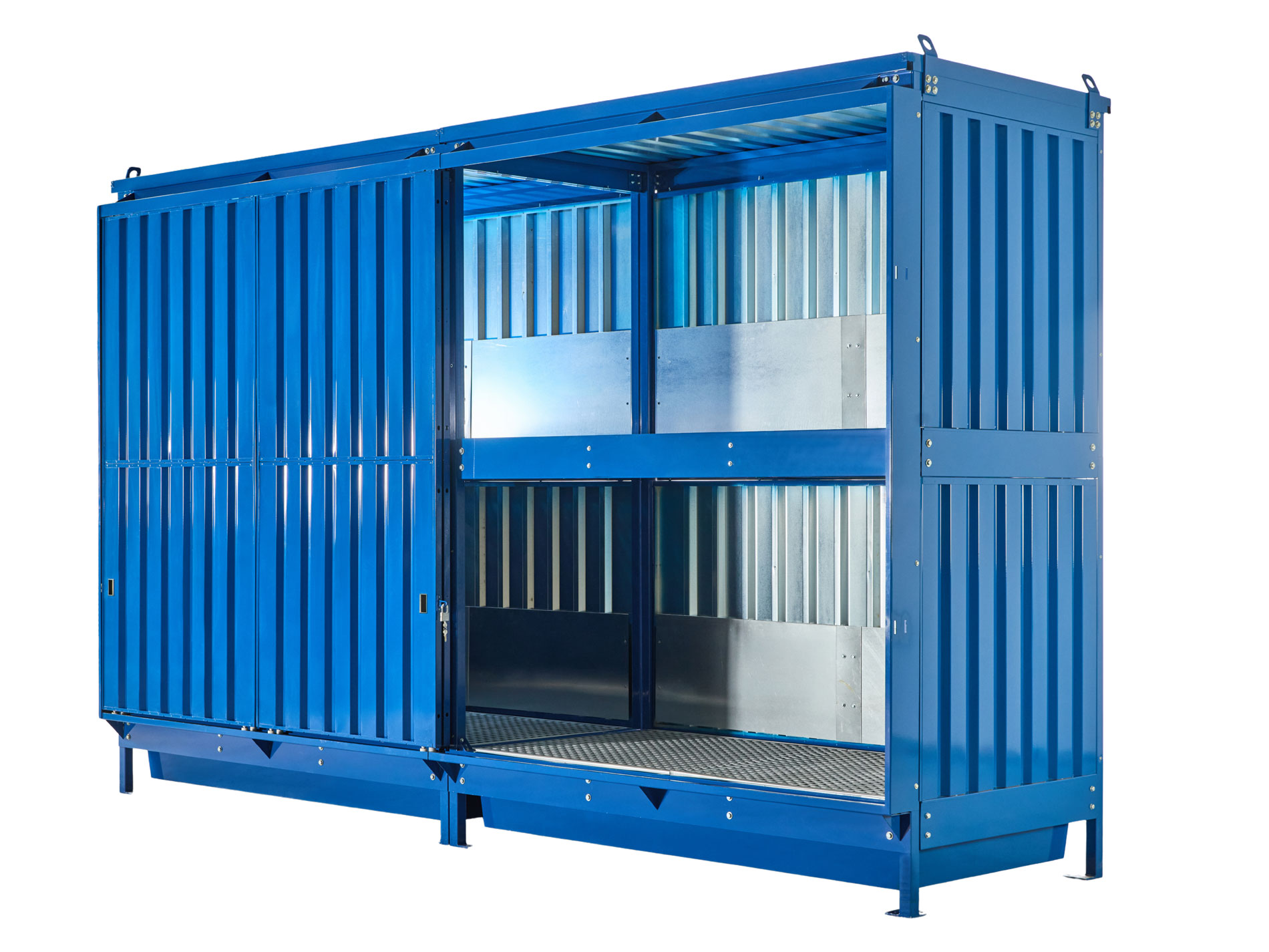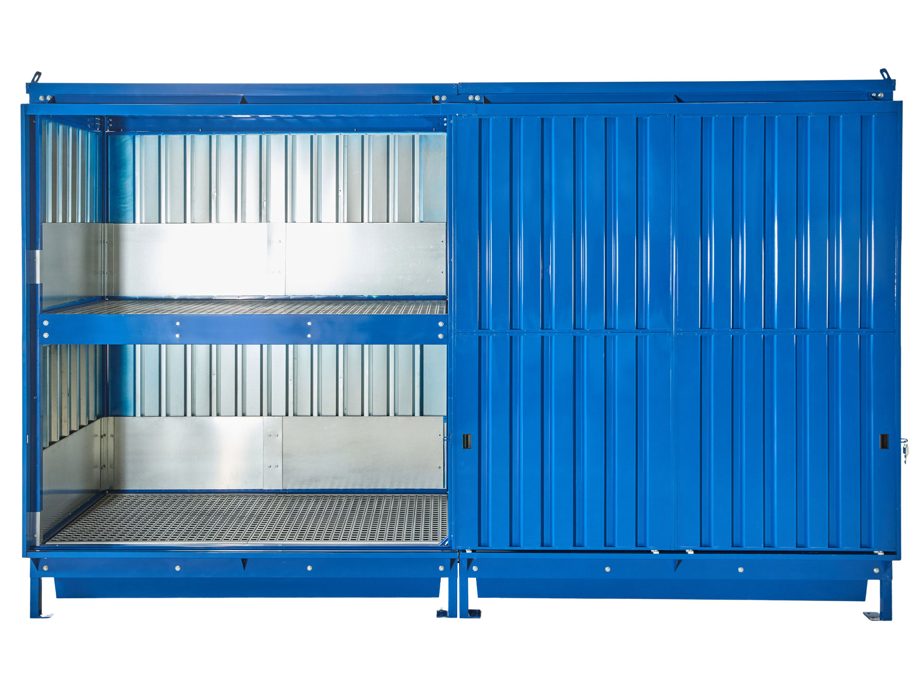 It utilizes both height and floor area, offering double the storage capacity without taking up additional ground space. The flatpacked design makes it easy to transport and assemble on-site, as the user can install the entire unit themselves. Perfect for environments where space is limited, this unit provides a practical, self-assembly solution for storing liquids while optimizing storage space.