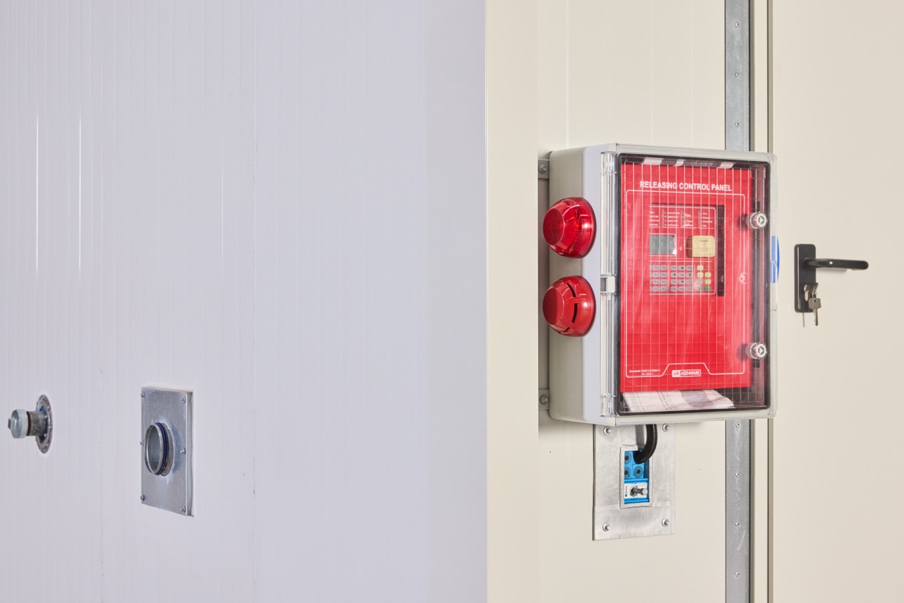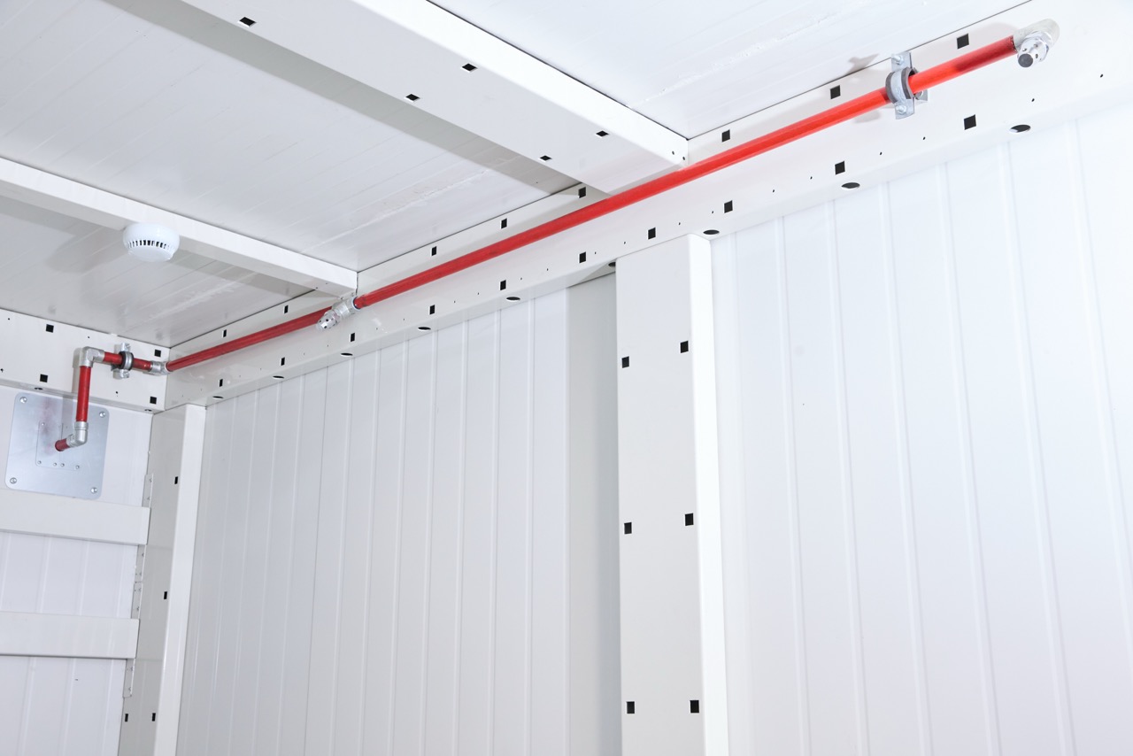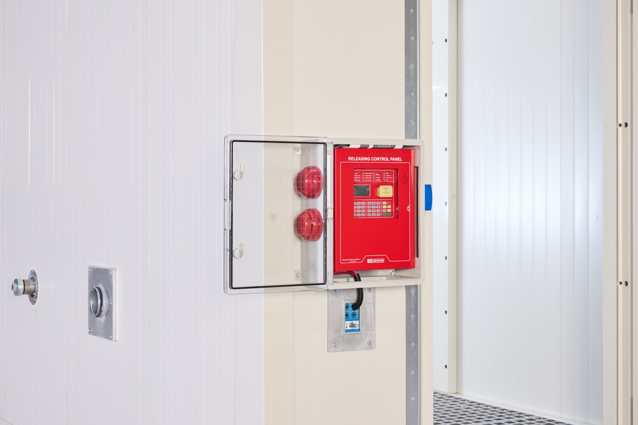 Depending on the product’s intended use and the materials to be stored, FM200, Aerosol, or AFFF type fire suppression systems can be integrated.