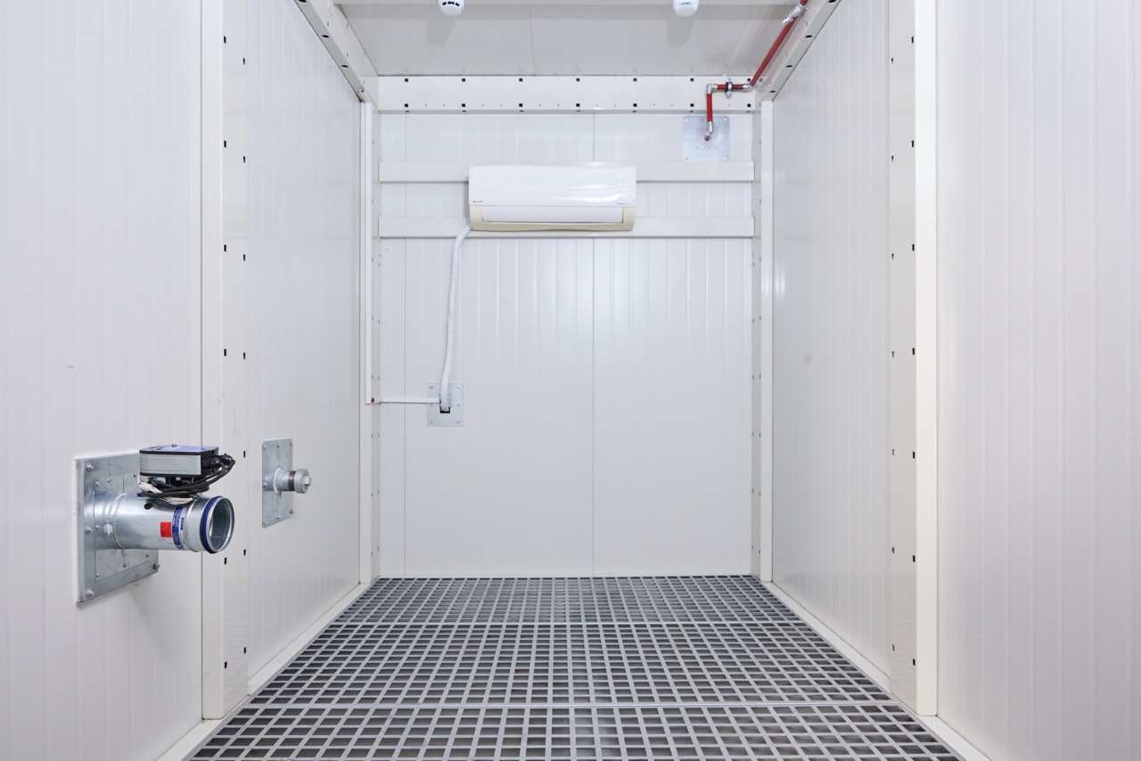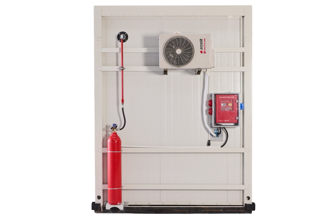 These systems consist of components such as a fire extinguisher, smoke detector, heat detector, control panel, and siren. Additionally, climate control is possible within the container interior to maintain the ideal temperature and humidity balance.